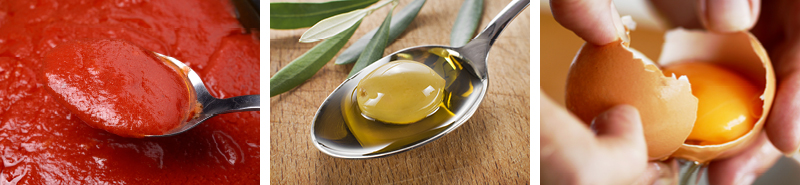 Томат разминается при помощи вилки до кашеобразного состояния. После этого к полученной массе добавляется желток и масло. После тщательного перемешивания средство готово к использованию. Полученная смесь наносится на лицо на 10-15 минут.