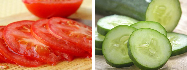 За комбинированным типом кожи ухаживать сложнее всего. Маска должна освежать, улучшать цвет лица и тонизировать. Согласно отзывам, в таких ситуациях наибольшей эффективностью обладает смесь томата с огурцом. Овощи просто нарезаются тонкими кружочками. На область шеи и щек накладывается помидор, а на подбородок и крылья носа огурец. Выполнять такую маску можно не чаще 1 раза в неделю.