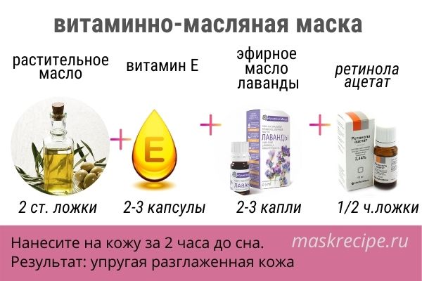 сметана и оливковое масло — по одной ложке, витаминов А и Е по несколько капель