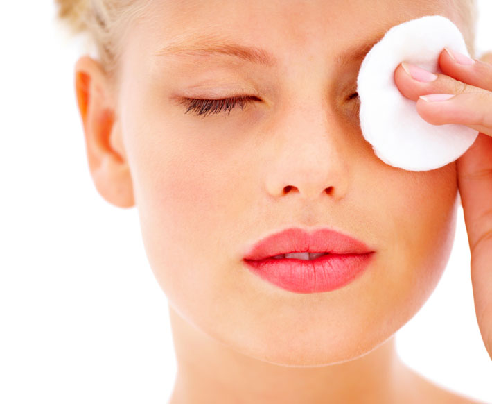 1. Демакияж. Для удаления туши, теней и прочей декоративной косметики, ватный диск смачивают небольшим количеством персикового масла, накладывают смоченную вату на закрытое (но не зажмуренное) веко, держат от 15 до 30 секунд (в зависимости от вида и качества туши), протирают верхнее веко в направлении от переносицы к уголкам глаз, нижнее от уголков глаз к переносице. Брови протирают в направлении от переносицы к уголкам. 15-30 секунд уходят на процесс растворения косметики и отделения ее от кожи.