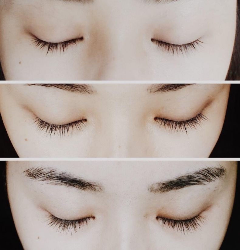 - ламинирование – завивка и окраска ресниц с использованием полезных средств. Единственная салонная процедура, которая не только улучшает состояние и вид волосков, но и является полезной для них. Недостатком процедуры является высокая стоимость. Кроме того, обработанные волоски плохо переносят высокие температуры, поэтому придется отказаться от посещения саун и бань;