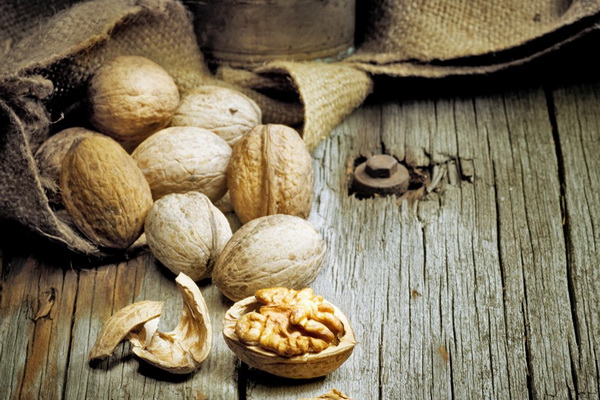 - маска для сухой кожи: смешать порошок из 1 ядра грецкого ореха, 1 чайную ложку сливочного масла, настоять 30-40 минут, добавить 1 желток и 1 чайную ложку мёда, тщательно перемешать. Маску с грецким орехом нанести на кожу лица, длительность процедуры 20 минут, смыть тёплой водой.