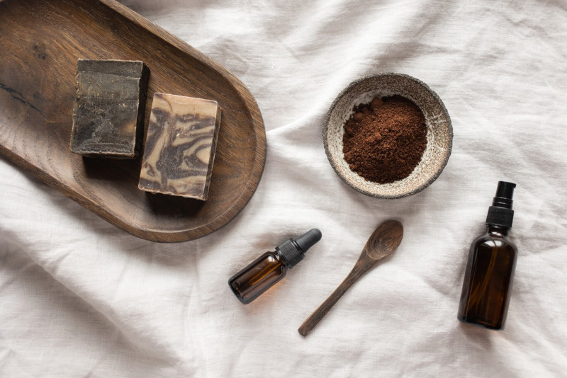 - Сделать густую пасту из 2 чайных ложек черной глины и фильтрованной или кипяченой воды. Добавить 10 капель репейного масла и 2 – коричного эфира. Перемешать и покрыть кожу лица на 8-10 минут;