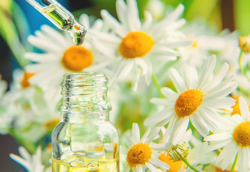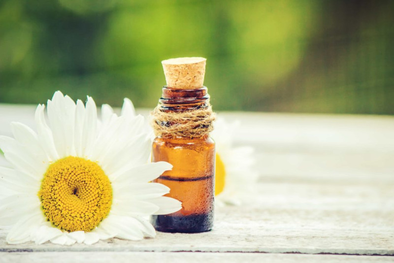 В косметологии применяются косметическое и эфирное масла для лечения прыщей, гнойничков, угревой сыпи, других кожных воспалений. Эфир из ромашки: