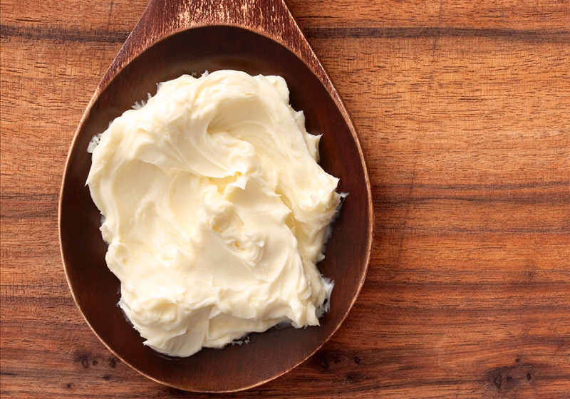 - Растопить масло ши, используя водяную баню или режим разморозки в микроволновой печи. При этом продукт следует постоянно помешивать и остановиться на достижении консистенции мягкого сливочного масла.
