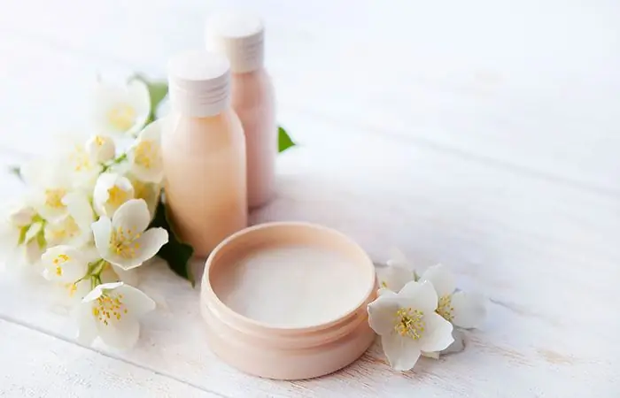 Измельченные цветы жасмина или масло жасмина при использовании вместе с вазелином или кокосовым маслом помогают уменьшить растяжки и шрамы. Он также тонизирует и успокаивает сухую кожу и сохраняет эластичность кожи (3).