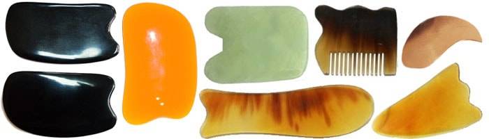 Гуаша – древнейший вид китайского массажа. Обычно скребки для него изготавливают из кристаллов кварца, могут быть они и из нефрита. Раньше их традиционно изготавливали из кости, рога, серебра, натурального камня. У каждого из этих материалов были свои свойства, особенности воздействия и зоны применения. Так, натуральный камень долго сохраняет температуру, обладает нужным для глубокой проработки мышц весом.