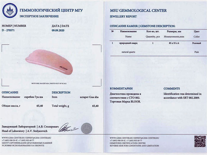 На официальном сайте указано, что товары проходят двойной контроль качества и работают они только с натуральным розовым кварцем — именно тем, который передает энергию с собственной частотой вибрации. Это подтверждается сертификатом соответствия: