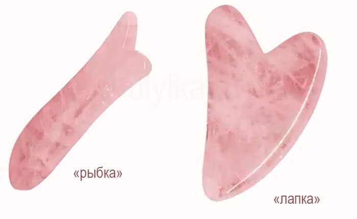 Для каждой части тела существует пластина определенного размера и формы. Для области лица она небольшая и изящная, ее удобно держать в руке. Обычно в форме рыбки или лапки. Крупные и квадратные предназначены для массажа тела.