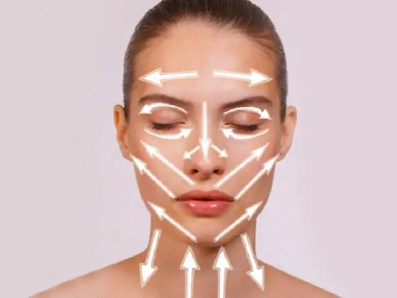 - Выполнять движения необходимо строго придерживаясь массажных линий, от центра к периферии, поэтапно проходясь по всем частям лица.