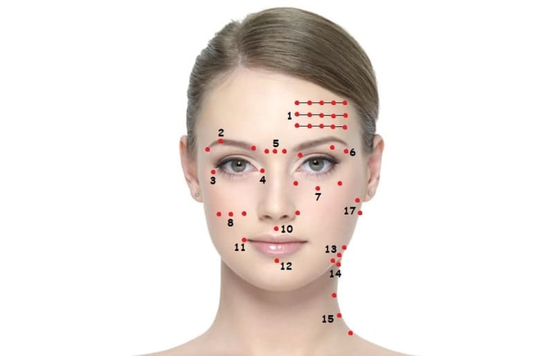 Основными точками для массажа лица являются: