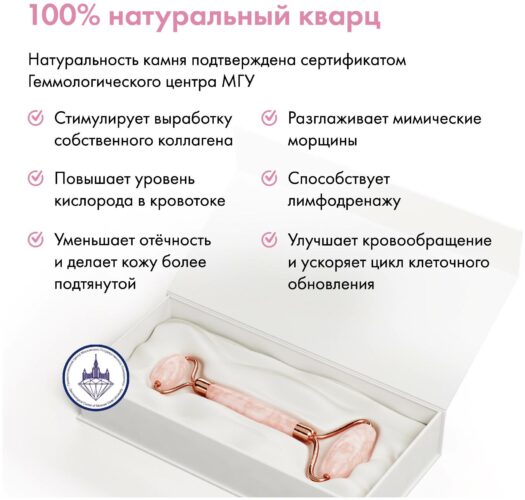 Прокатывание валика не только успокаивает, но и стимулирует выработку коллагена, улучшает лимфодренаж, снимает отеки и подтягивает кожу. Прибор сочетает в себе оздоровительные и омолаживающие приемы. Благодаря воздействию натурального камня повышается уровень кислорода в крови, и разглаживаются мимические морщинки.