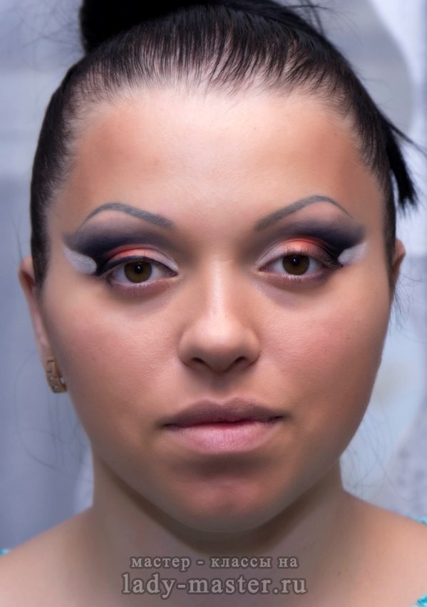 1. Подготовка и оформление лица при помощи базы (наносим кистью синтетической плоской или же пальчиками, что эффективнее), тональной основы (наносим кистью, либо влажным спонжем), скулового корректора (наносим скошенной натуральной кистью для скул), пудры (наносим пушистой натуральной кистью для пудры).