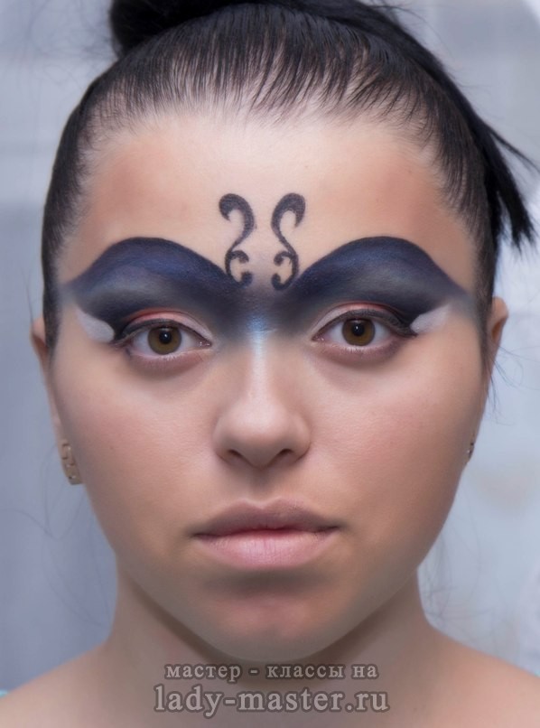 7. Этой же подводкой подчеркиваем контур маски, заполняем маску синими тенями, затем от подводки – черными.