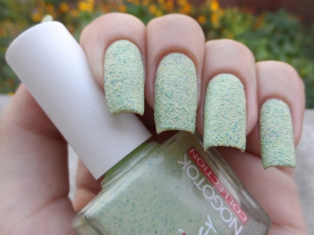 - Далее снова нанесите слой лака, и пока он не засох, обильно посыпьте его песком. Теперь нужно ждать. Главным минусом такого маникюра в домашних условиях является то, что сложно понять, ноготь высох или нет. Мы советуем ждать не менее 10 минут в теплой комнате и около 15 в прохладной;