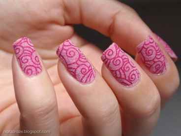 - невероятно элегантно смотрится маникюр с вензелями и локонами с бархатистым песком;