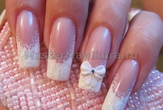 французский шик. Классическое сочетание нюдового фона с белоснежной полоской свободного края не теряет своей актуальности на протяжении многих лет. Смеем признать, вензеля на френче смотрятся не менее лаконично и изысканно;