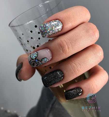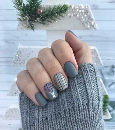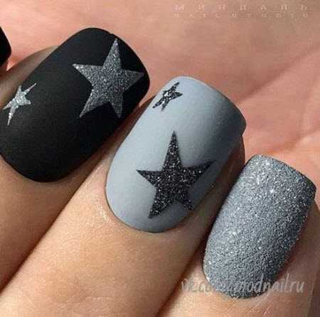 Спокойные серые оттенки будут отличной идеей для маникюра на Новый год 2021, этот цвет считается одним из самых универсальных в цветовой палитре. Сочетание серого лака и серебристых блесток или фольги будет основным трендом 2021 года.