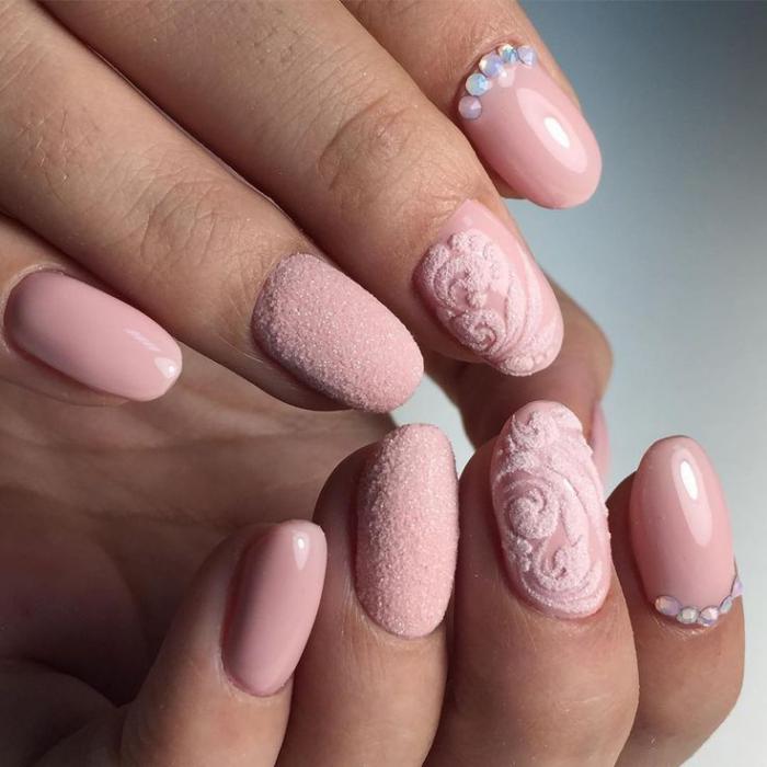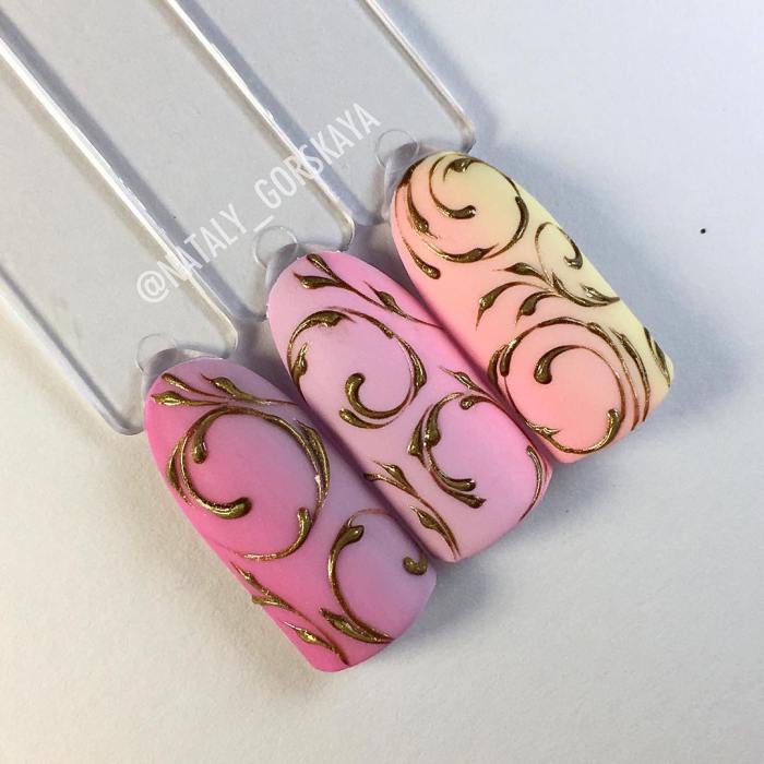 мягкость в деталях. Создать эффектные бархатные вензеля под силу любой девушке, имеющей в коллекции сыпучую песочную текстуру. К слову, вензеля акриловой пудрой отличаются особой стойкостью, но склонны быстро пачкаться;