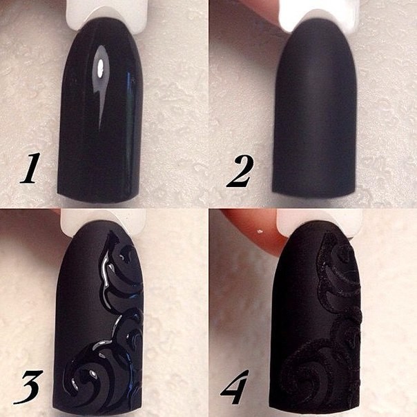 Для этого дизайна вам понадобится черный гель-пластилин, а также черный шеллак.