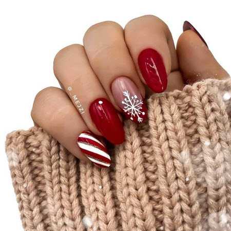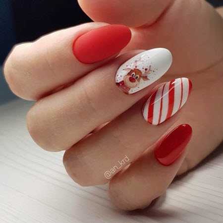 Красный, белый, золотой, серый, черный — идеальные зимние цвета для новогоднего маникюра сезона 2021. Кроме того, снежные хлопья, снежинки, морозные разводы, олени и т. д. также являются отличной идеей новогоднего дизайна ногтей.