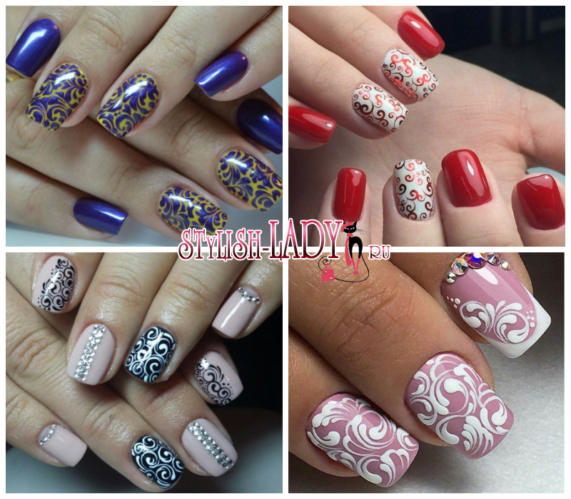 Оказывается, кроме прорисовки вензелей кистью есть еще пара вариантов, как заполучить маникюр с такими узорами.