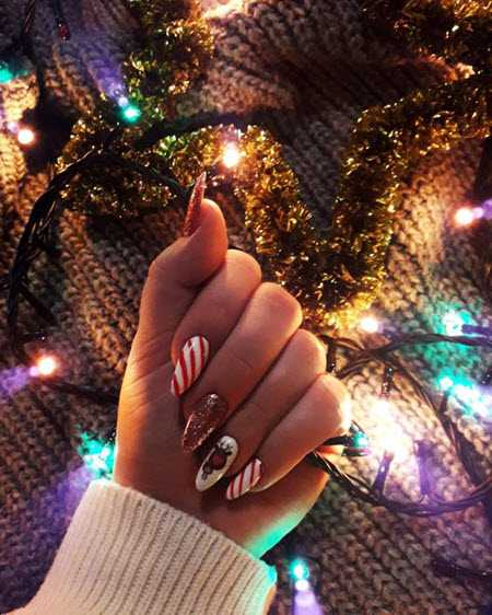 - Идеальная форма – овальная или миндалевидная. Новогодний дизайн ногтей с заостренными или квадратными пластинами будет выглядеть безвкусно.