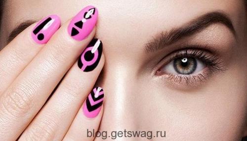 Использование гель-лака позволяет рисовать что угодно. Но особой любовью у модниц пользуются лаконичные геометрические рисунки, которые покрывают всю руку или некоторые ноготки. Главное помнить, что основой этого тренда является четкость нарисованных линий.