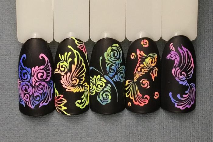 Для тех красавиц, кто не хочет тратить свое драгоценное время на «муки вольного художника», существуют пластиковые или картонные трафареты. Принцип работы с ними знаком каждому из детства: прикладываете рисунок к ногтю, и заполняете готовую форму лаком или гелем. Что ж, такой читерский ход позволит вам больше внимания уделить не технике, а задумке. Ну а креативные идеи, пробуждающие фантазию, мы возьмем на себя:
