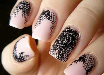 Стемпинг-дизайн можно сочетать с другими видами дизайна. Например, на мелком кружеве можно нарисовать кистью романтичные вензеля.