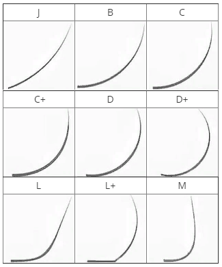 JC (или В) – самый прямой, близкий к изгибу натуральных ресниц. Подойдет для естественного наращивания, а также при миксовании изгибов. Микс изгиба В с изгибом L – идеальное сочетание для создания эффекта стрелки в наращивании ресниц