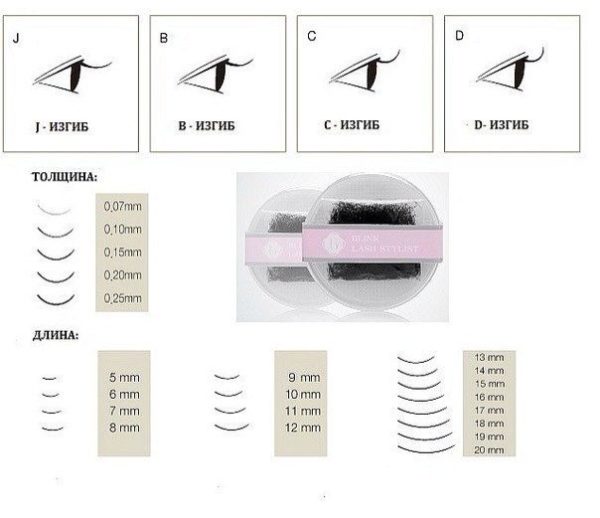 Виды изгибов ресниц для наращивания.