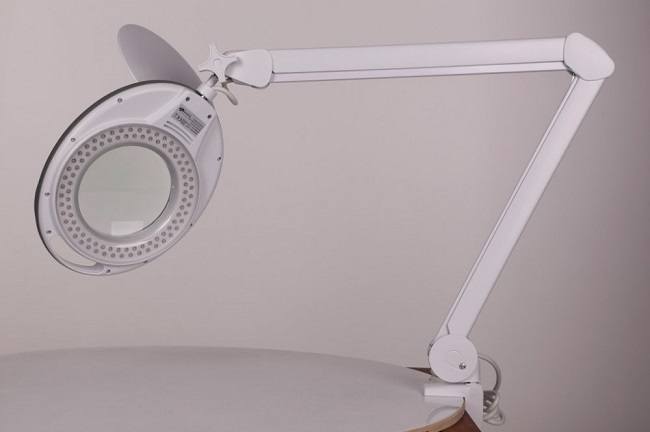 - Лампа-лупа – оснащается круглой большой лампой и лупой, которая позволяет рассматривать ресницы под увеличительным стеклом. Такая модель обеспечивает прекрасный обзор, однако от работы с лупой глаза довольно быстро устают.