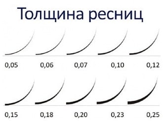 Толщина ресниц для наращивания.