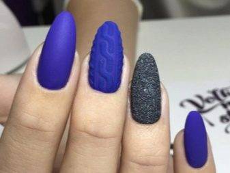Светлые тона в таком варианте маникюра выглядят не особо выразительно, поэтому выбирать следует более насыщенные оттенки: синий, серый, серо-голубой, серо-лиловый, пепельный, фуксия, черный, изумрудный. Наличие в матовом лаке блесток или перламутра может немного испортить шикарный вид ногтей, делая ногти «грязноватыми», поэтому лучше предпочесть однотонные лаки. Матовый маникюр лучше смотрится на ногтях овальной формы. На квадратных ногтях он выглядит несколько грубовато. Для достижения одинакового результата (при создании матового маникюра в домашних условиях) лак не нужно наносить сразу на все 5−10 ногтей. Покройте сначала 2−3 ноготка, создайте, подержав над паром, матовый эффект, только потом приступайте к оформлению следующих ногтей. Сплошной матовый маникюр некоторым может показаться слишком сдержанным, тогда «сдержанность» можно разбавить глянцевыми акцентами. Так, например, покрыв край ногтя прозрачным лаком или цветной эмалью, получится матовый френч. Также можно расставить в хаотичном порядке точки или же нарисовать любой рисунок. Глянец на фоне бархата будет эффектно выделяться. Лучше использовать либо этот же цвет, либо прозрачный лак. Перед созданием маникюра не используйте для увлажнения рук жирный крем. От этого может «пострадать» эффект бархатности. Одним из преимуществ матового лака является его свойство скрадывать случайно образовавшиеся царапины на маникюре. Но взамен лак выдает малейшие дефекты и неровности ногтевой пластины