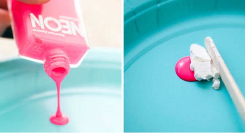 - на кусочек пищевой фольги высыпьте небольшое количество крахмала и добавьте несколько капель лака