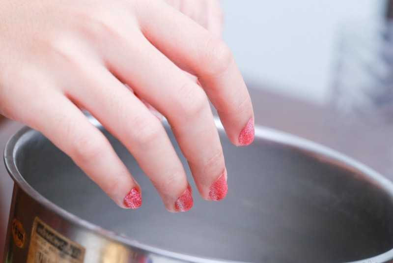 - Не высушивайте ногти. Как только Вы нанесете лак, тут же поместите Ваши кисти над паром из чайника или кастрюли, ладонями вверх. Держать их нужно на высоте 20 – 30 см, чтобы не обжечься. Подождите около 20 секунд;