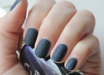 Большинство матовых лаков имеют приятную шелковистую поверхность, но есть лаки с бархатистым, песочным и зернистым эффектом на ногтях. Матовые покрытия с такой необычной фактурой часто дополняются крупным или мелким глиттером. Такие фактурные лаки коварны для девушек с короткими и широкими ногтями – они значительно утяжеляют маникюр и еще больше подчеркивают широкие ногти, делая их похожими на лопатки.