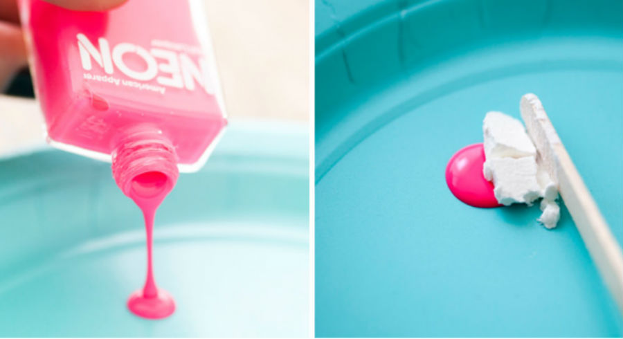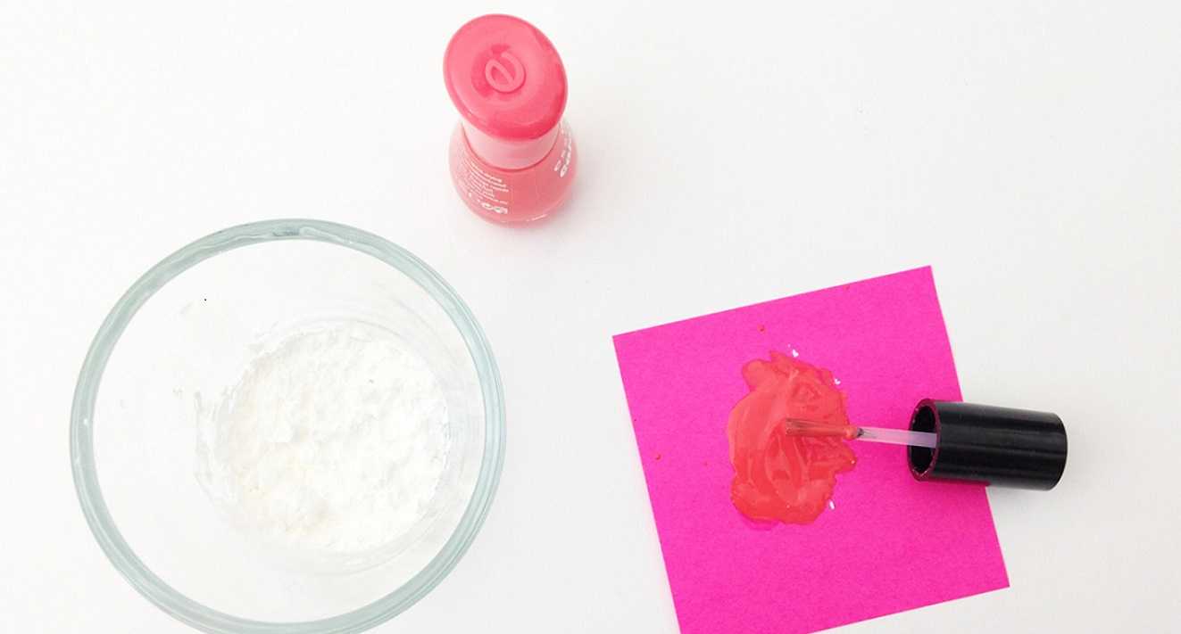 - на кусочек пищевой фольги высыпьте небольшое количество крахмала и добавьте несколько капель лака