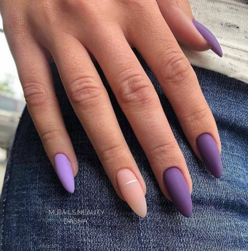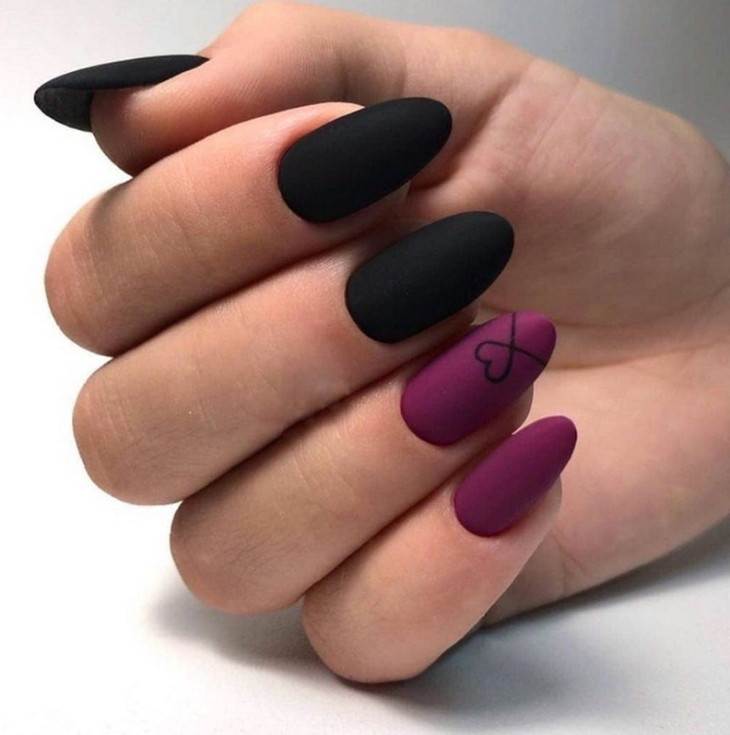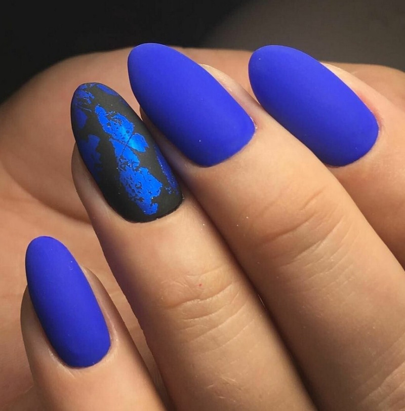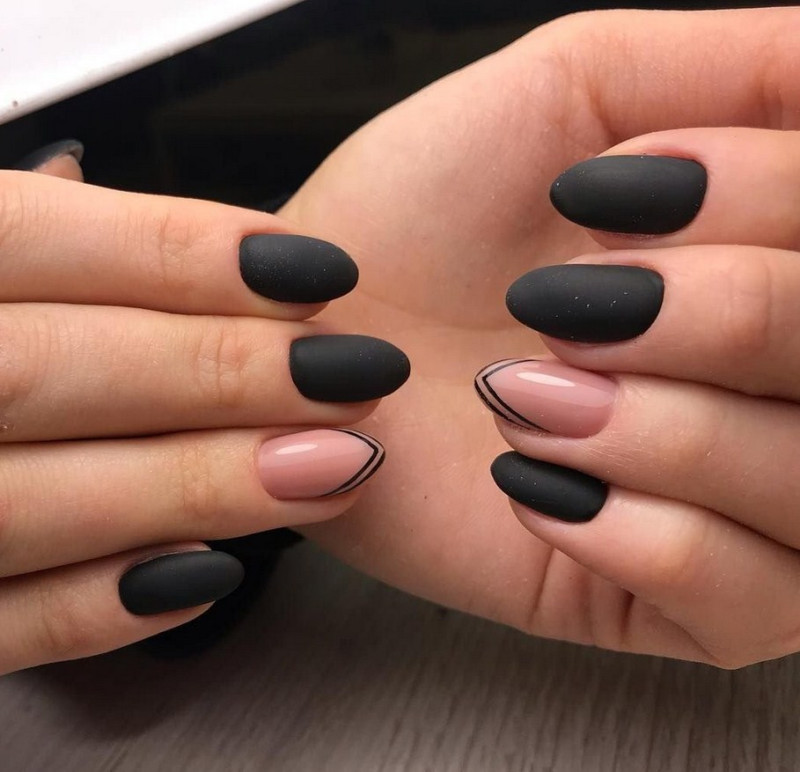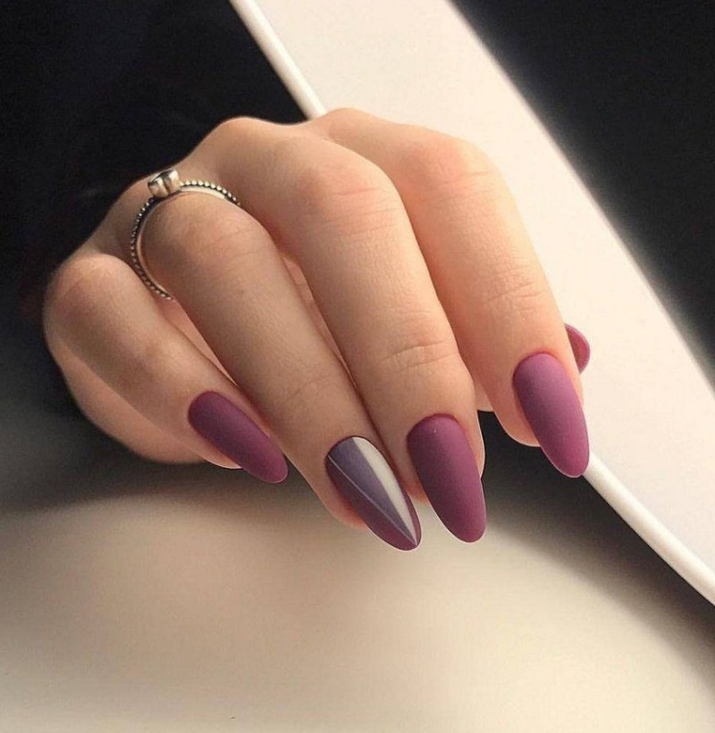 Миндаль. Такая форма сама по себе считается очень стильной, нежной и женственной. Все эти качества матированная основа только подчеркнёт и усилит. Идеальное решение – тёмные оттенки лака, которые выглядят максимально эффектно.