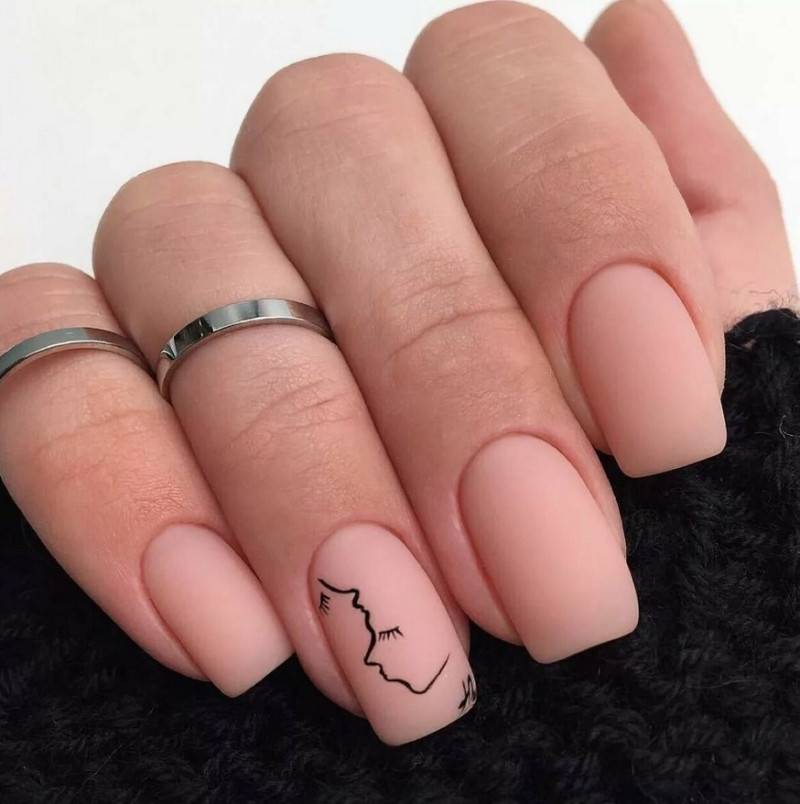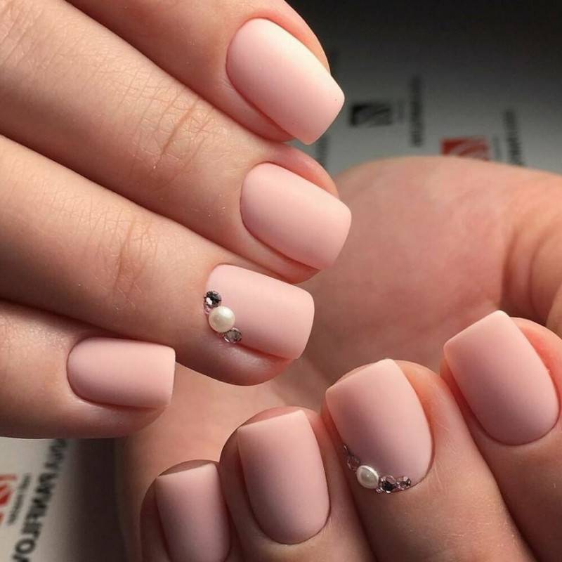Короткие матированные ногти. Оттенок покрытия может быть любым. Ограничения есть только в типе и количестве декора – он должен быть минималистичным и не перегружать общий нейл-дизайн.