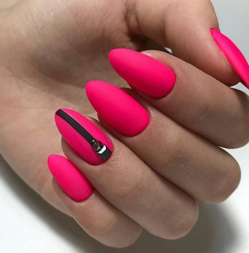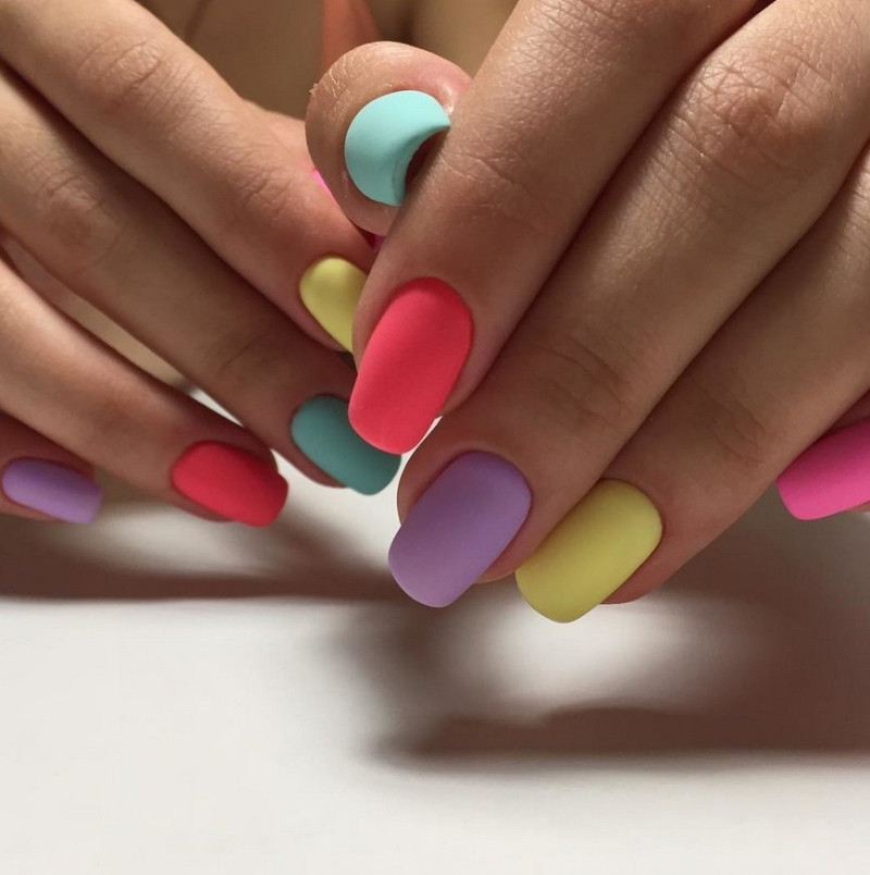 Яркие матовые ногти. Для любителей ярких оттенков мастера предлагают различные неоновые лаки, а также кислотные вариации матового топа. Они сделают дизайн насыщенным и смелым, чтобы его обладательница сразу стала центром притяжения взглядов.