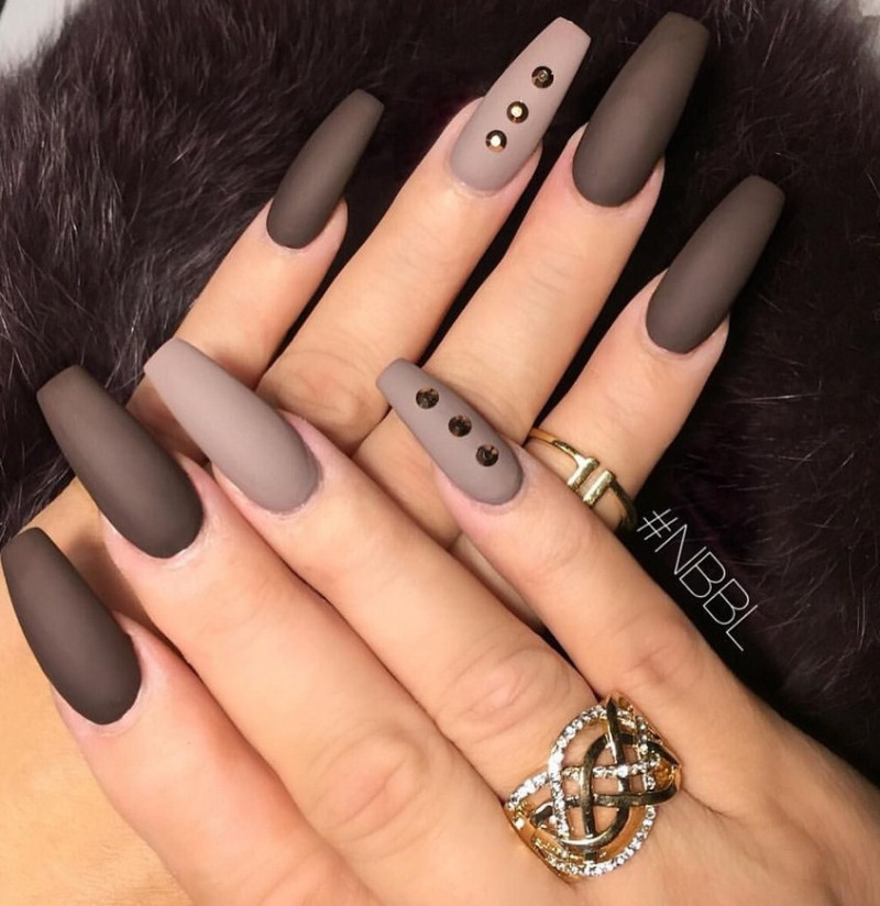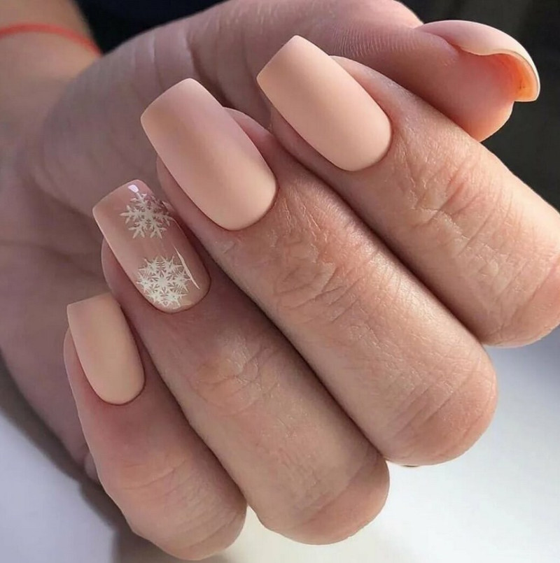 Бежевый. Глянцевый нюд давно привычен модницам, но при матировании поверхность получается ещё более естественной, натуральной. Если украсить ноготки блёстками или стразами, дизайн шикарно подойдёт даже для праздника.