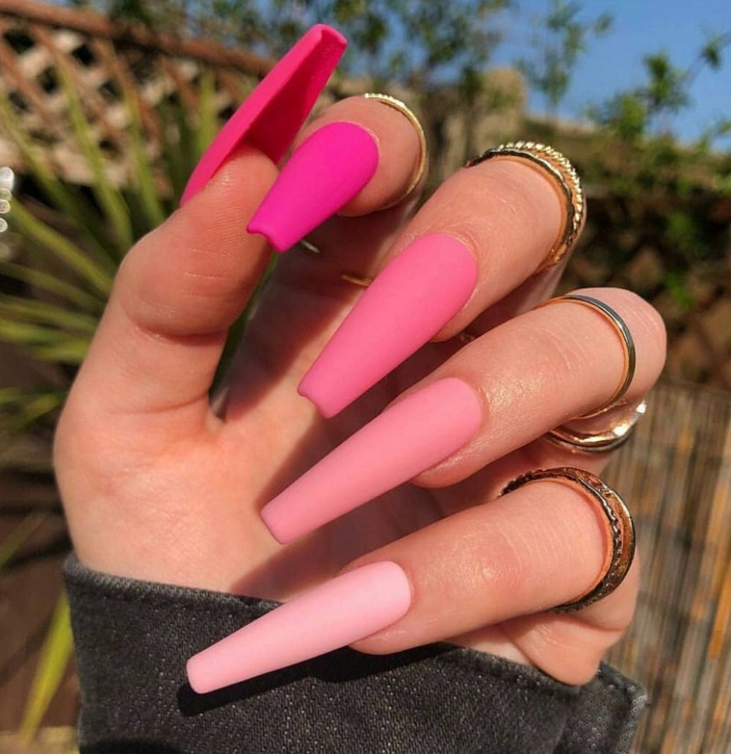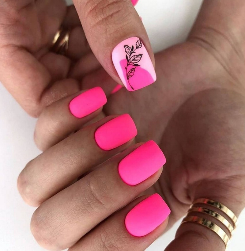Розовый. Все оттенки розового особенно удачны летом, весной. Монохромное покрытие с матирующим эффектом более нежное и деликатное, чем глянцевое, поэтому такой дизайн идеален для свадьбы, выпускного вечера.