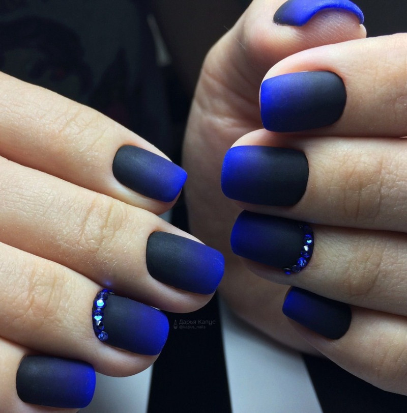 Роскошный маникюр с плавным переходом от одного цвета к другому замечательно смотрится не только в глянцевом исполнении, но и в матовом.