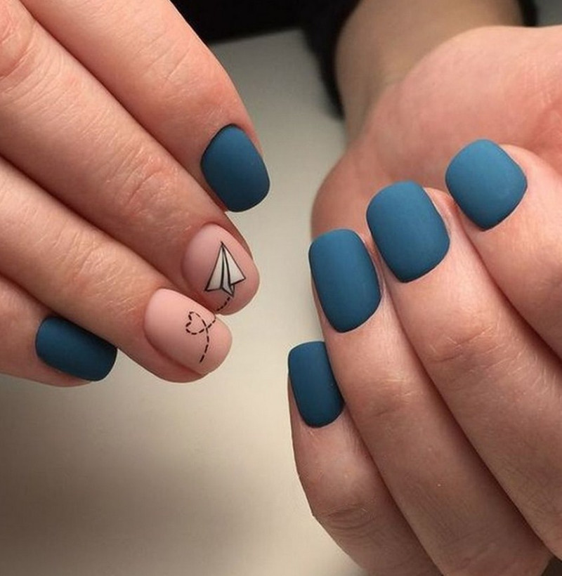 Часто матовая текстура в маникюре используется не полностью на все ногти, как «изюминка» маникюра. Вот примеры: