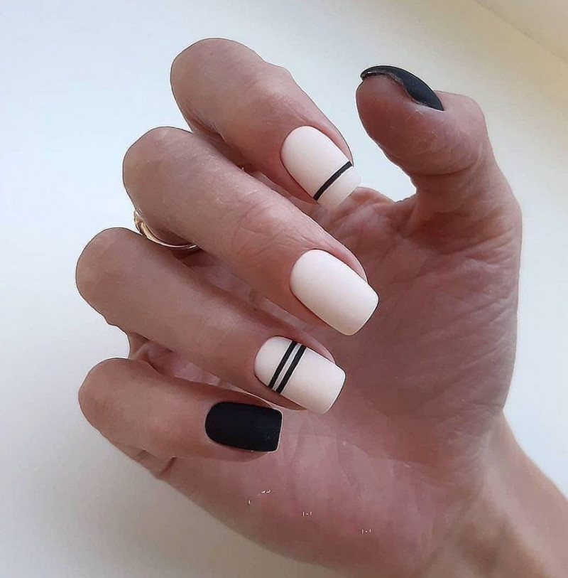 Неяркий повседневный матовый маникюр, в то же время достаточно интересный, который продержится не меньше 3 недель. Его можно корректировать (наносить финишные покрытия у кутикулы) и носить дальше, пока он совсем не отрастет или не надоест.