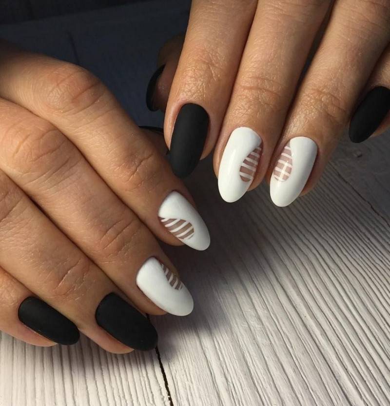 Матовый маникюр с глянцевым узором