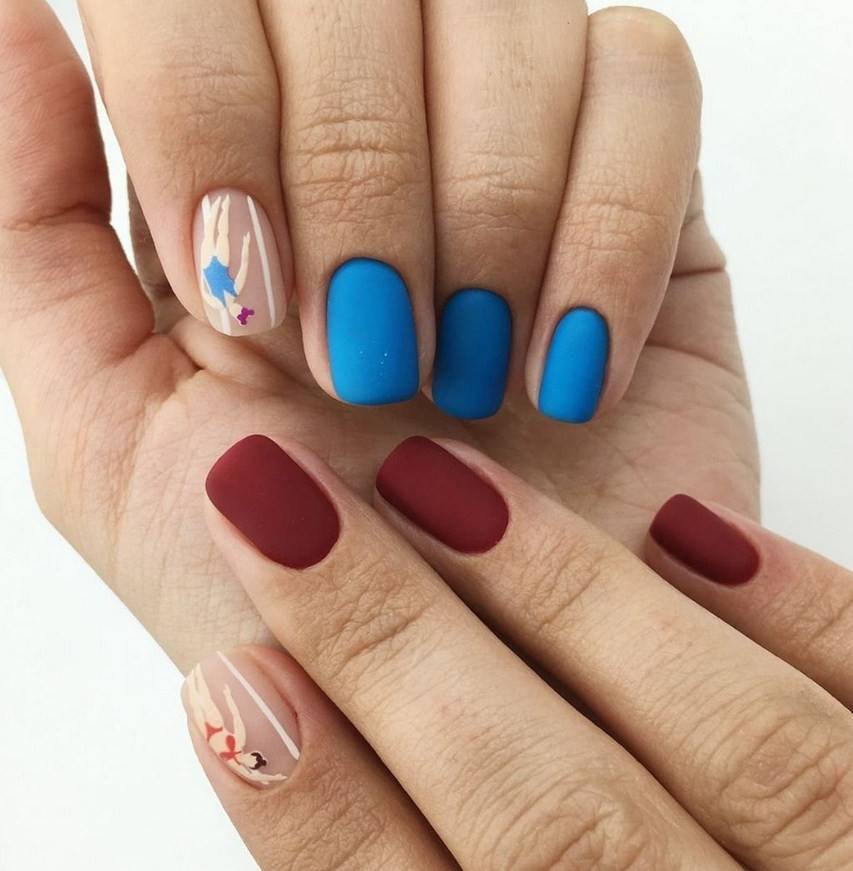 Если есть делание и возможность, то матовый ногти дополнительно украшают. Для этого подходят техники:
