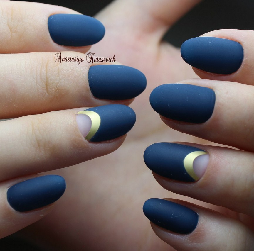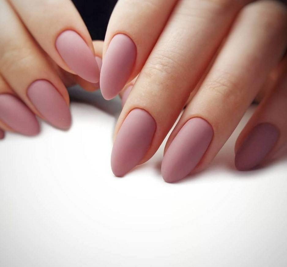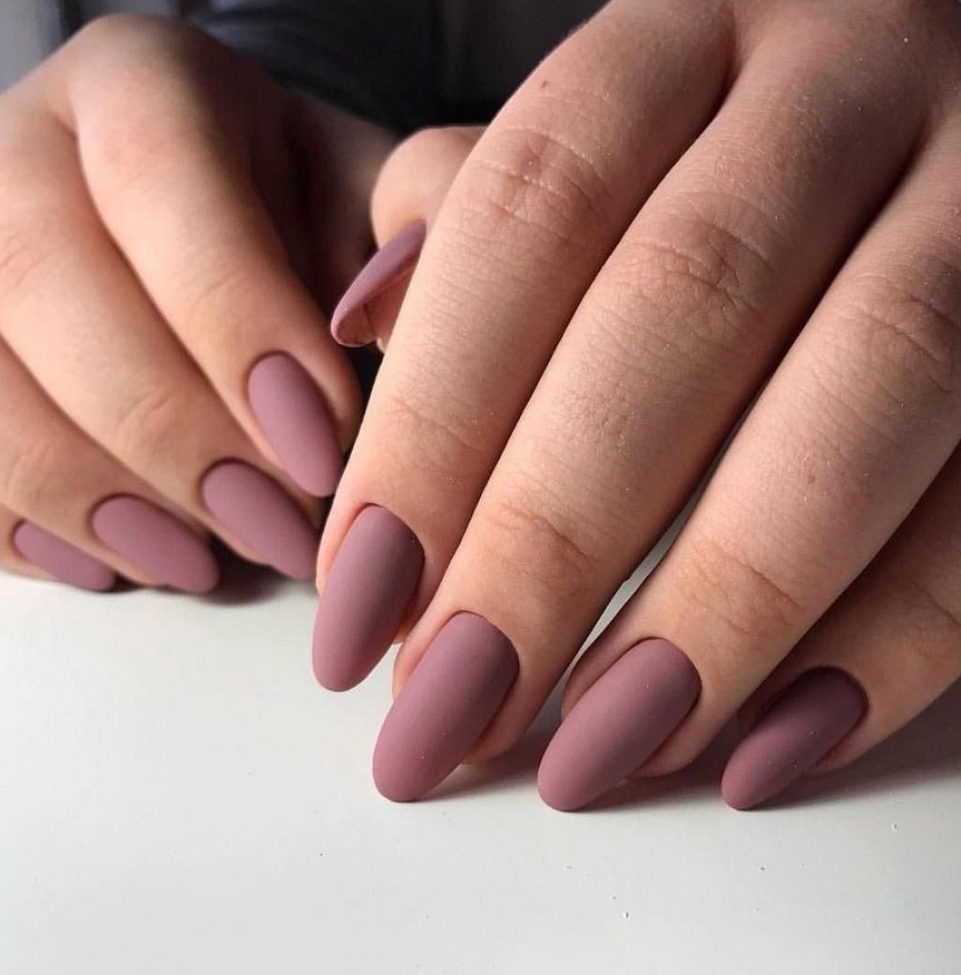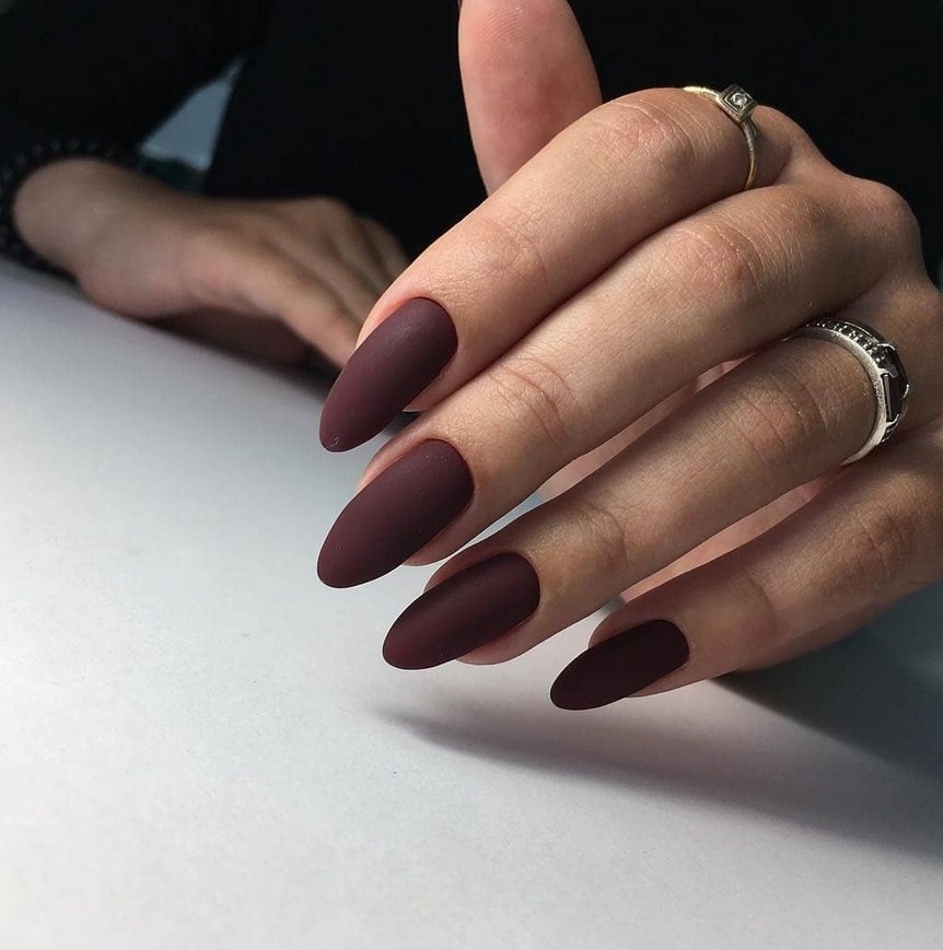 Миндаль. Такая форма сама по себе считается очень стильной, нежной и женственной. Все эти качества матированная основа только подчеркнёт и усилит. Идеальное решение – тёмные оттенки лака, которые выглядят максимально эффектно.